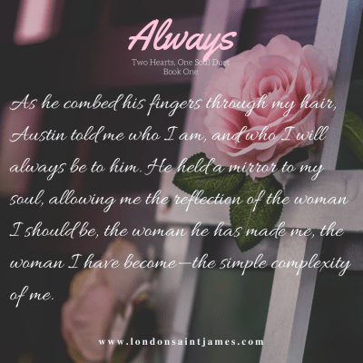 International bestselling author London Saint James’ first installment from Two Hearts, One Soul Duet is the epic tale of abiding love, heart-wrenching loss, and an astonishing bond that will find a way to endure.Winter Perri never truly understood love until she met Austin Carlyle—the man who would rock her world to its foundations and give her something to believe in. But the night before they were to be married, the fairytale shattered.